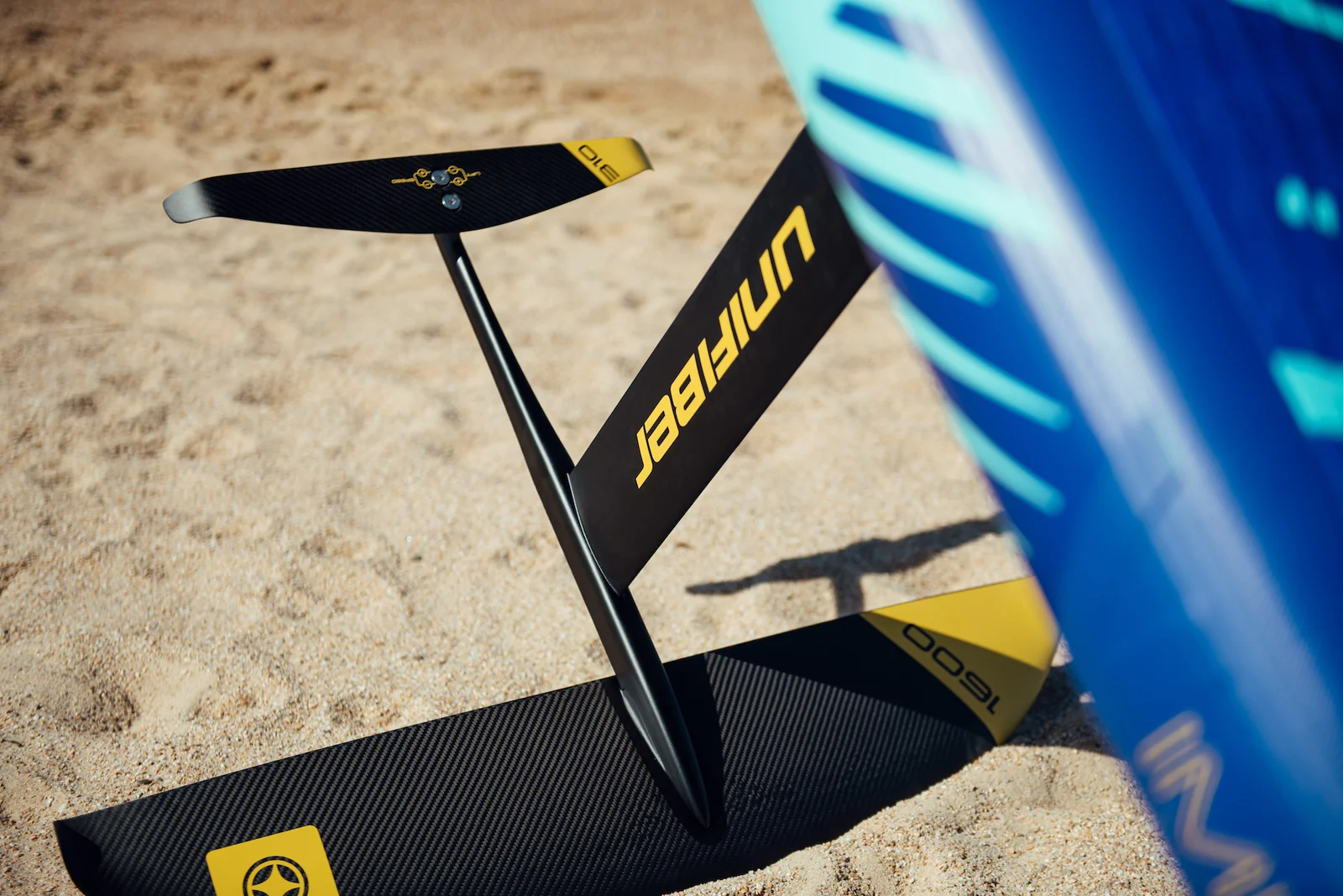 The foil is mounted on a 75 cm aluminium mast to help with control and reduce the severity of any wipe-outs.