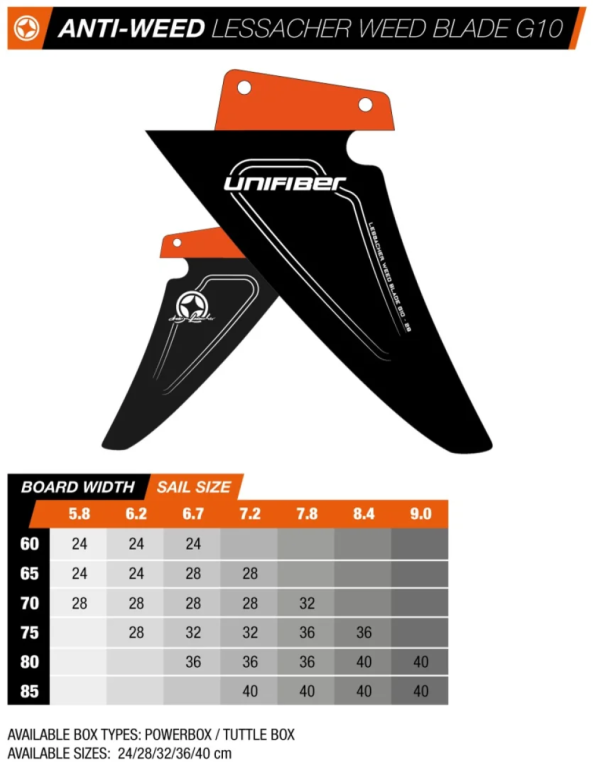 Our newest weapon to dodge the “evil green”. We again teamed-up with ‘Mr. Weed-Slasher’ – Wolfgang Lessacher – and created a lethal anti-weed line for spots infested with weed. The stiff G10 ‘asymmetrical’ profile’s a true power house, giving ideal lift characteristics for maximum speed and enjoyment.As the former FWD model this latest version has the leading edge moved slightly forward for even better performance of this already very successful range of Anti-Weed fins. The Weed Blade will benefit additional those who are looking for “normal” fin behaviour while being capable of higher speeds compared to it’s FWD predecessor. Very important: choose this fin 8-10 cm. shorter than you’d normally use for the best experience.